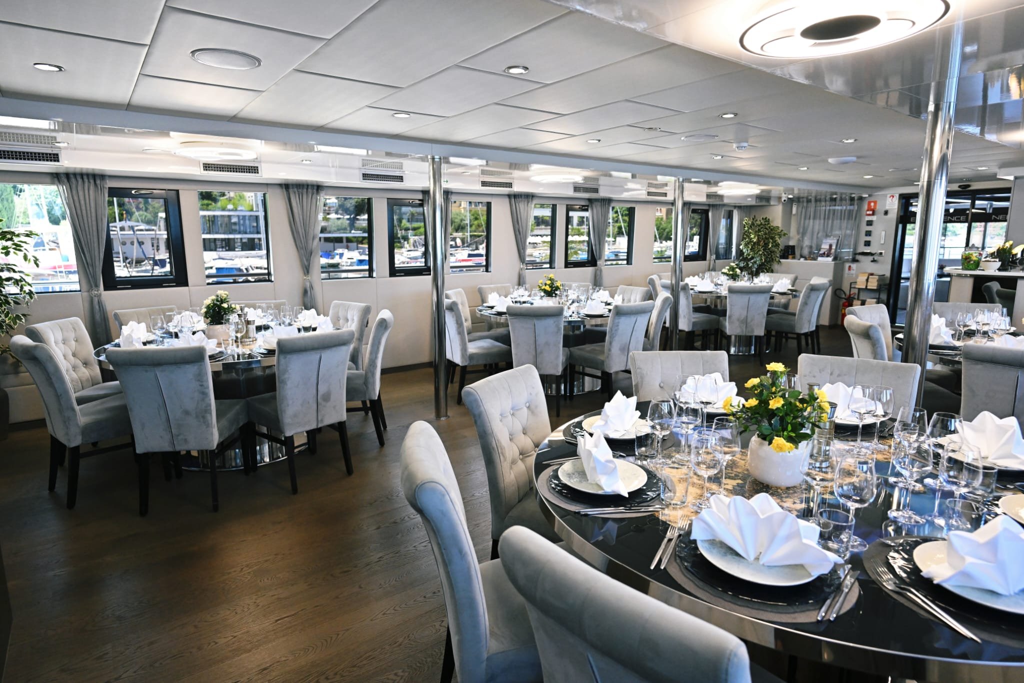 Multiple spaces for large- and small-group socializing including indoor and outdoor dining rooms and bars, and a large sundeck